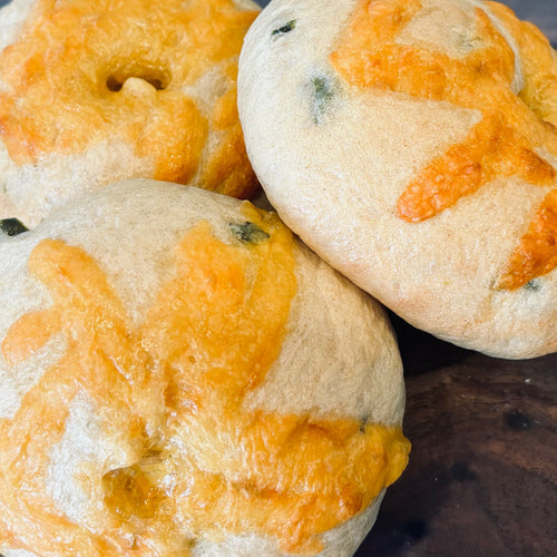 Savor the distinctive taste of our handcrafted New York-Style Sourdough Blueberry Bagels, perfect for a delicious breakfast or snack. Enjoy a half dozen of these flavorful bagels and start your morning with the sweet, juicy burst of blueberry in every bite.
